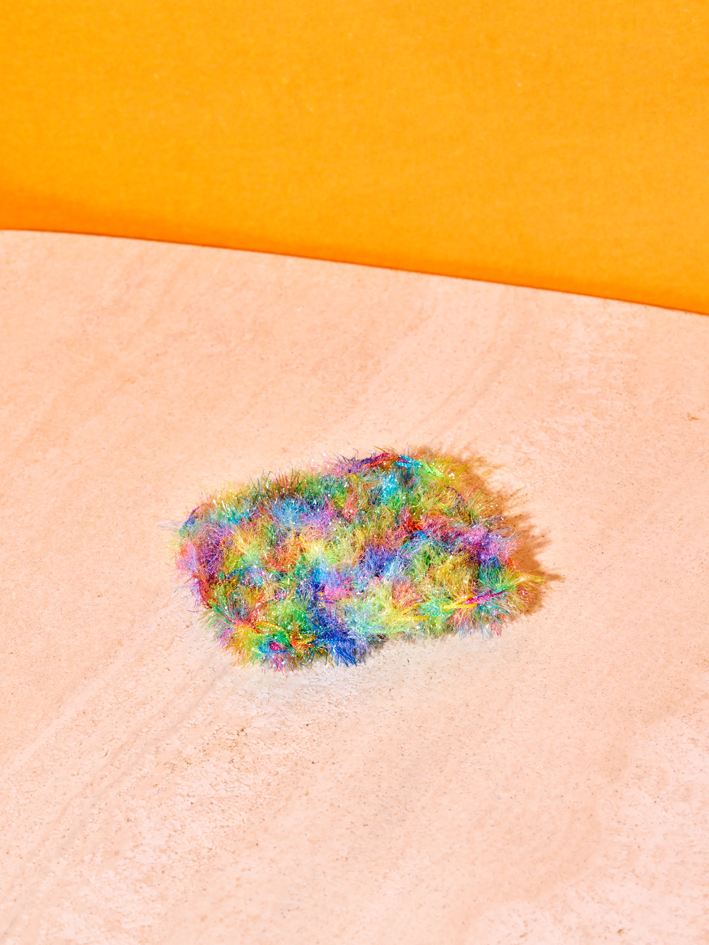 Kitchen scrubby handmade in Brooklyn, NY. Crocheted with sparkly yarn, a traditional Korean pastime. Delicate enough for your non-stick surfaces yet tough at breaking down any stuck-on messes. These sponges make washing your dishes a little more fun. They also require less soap than a traditional sponge, last much longer, and are cleaner as bacteria does not get trapped inside. Sold individually.