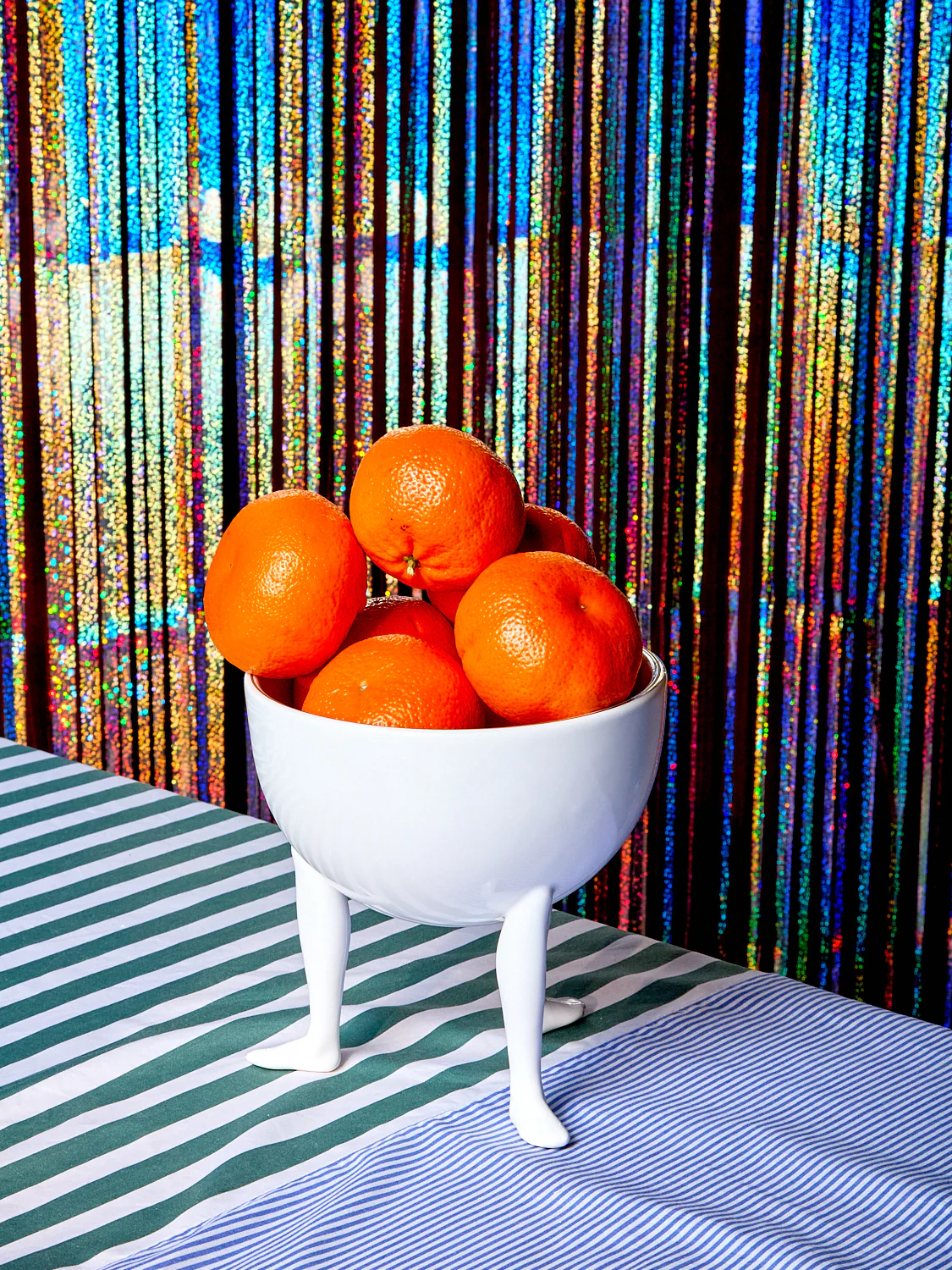 Ceramic bowl with legs by Chen Chen and Kai Williams with suede boots or hand knit red red and green socks by Chen’s mother, Yanping Zhou. Inspired by ritual food vessels called dings. Protect and style your bowl with tiny shoes (that come in a little shoe box). Limited edition. Available as Bowl with Boots, or with Knit Socks (LIMITED QUANTITY).