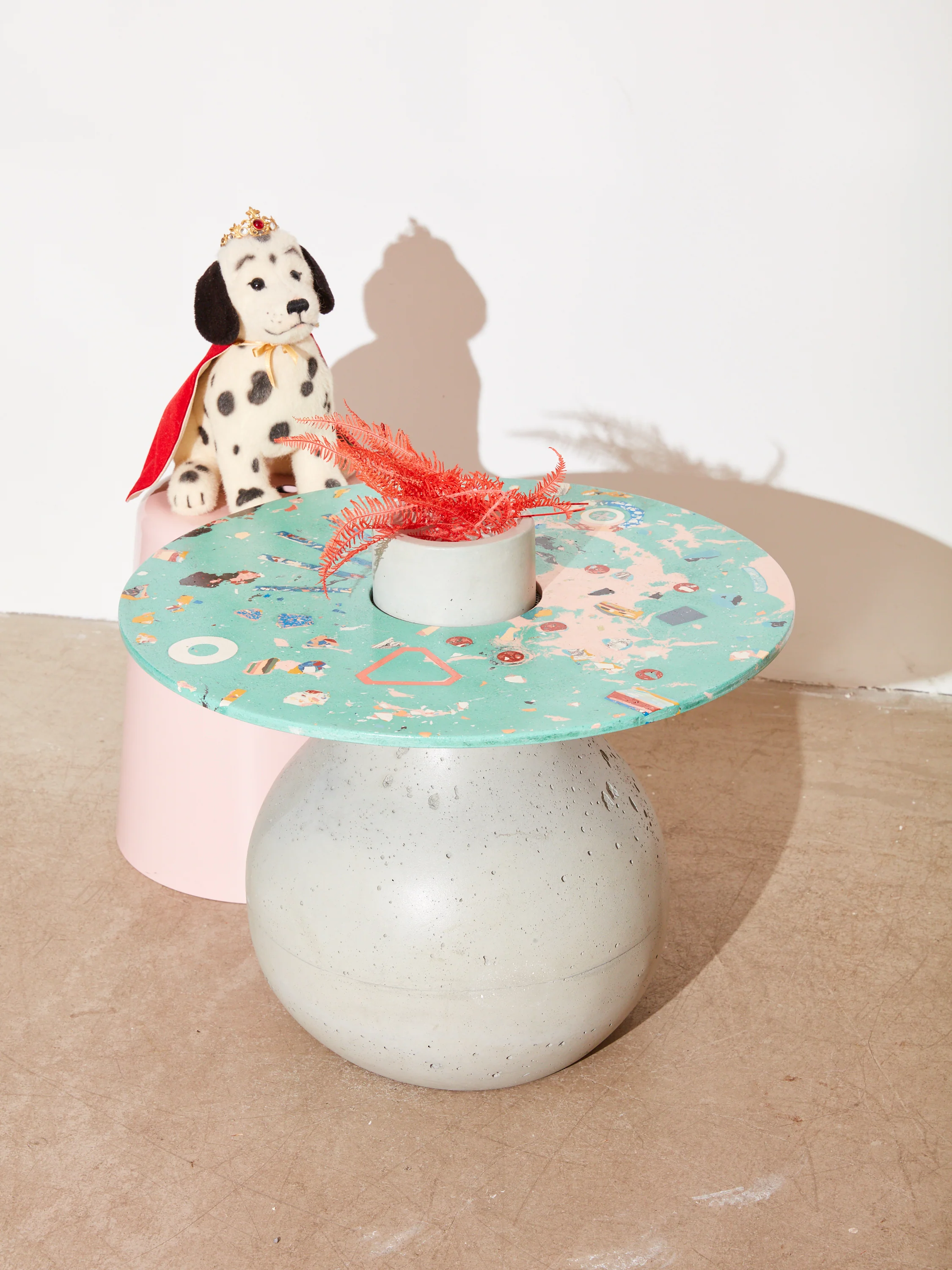This unique table is sculptural and functional all at the same time. We love the visual weight of this piece and how it's petite yet commands attention. One-of-a kind Concrete table that can be used as a coffee table or side table to add pizzazz to any space. The nature of the material allows for this piece to live outdoors.